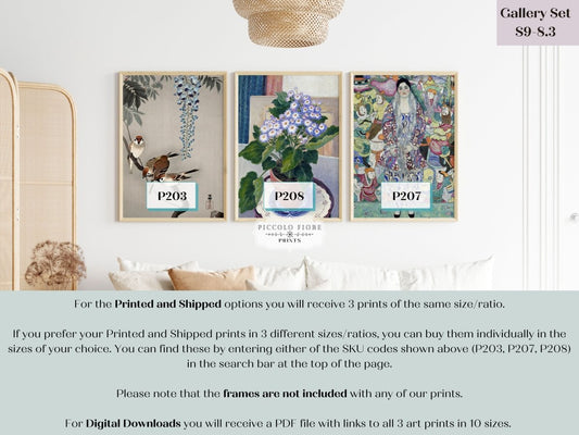 Klimt, Flowers and Birds | Gallery Wall Set | 3 Prints | S9-8.3
