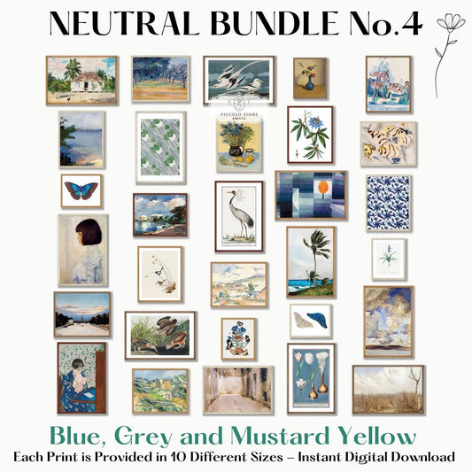 30 Digital Art Prints | BLUE/GREY Neutral Vintage Print BUNDLE | NB4