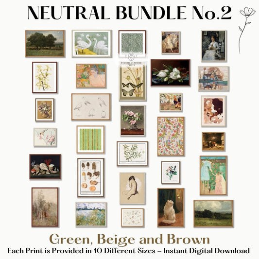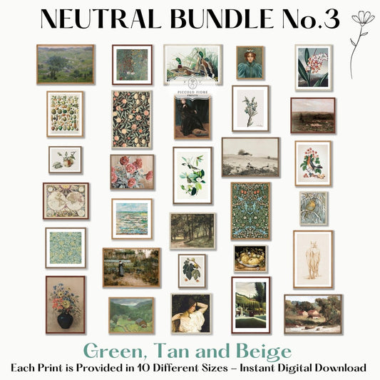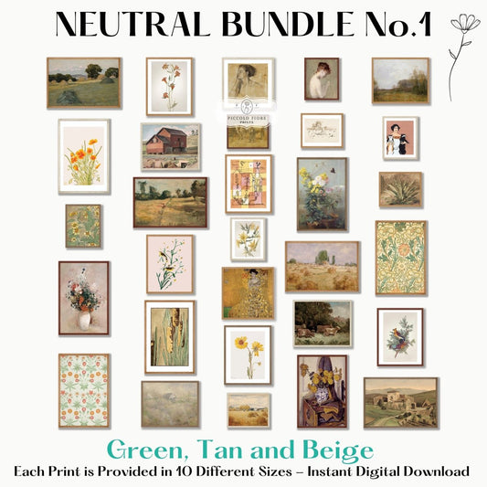 30 Digital Art Prints | GREEN/BEIGE Neutral Vintage Print BUNDLE | NB3