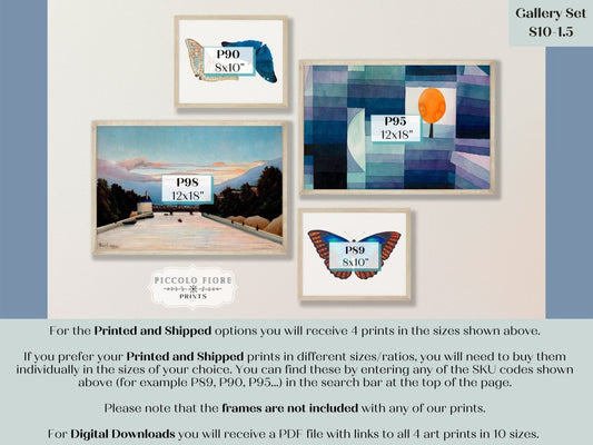 Eclectic Blue Butterflies | Gallery Wall Set | 4 Prints | S10-1.5