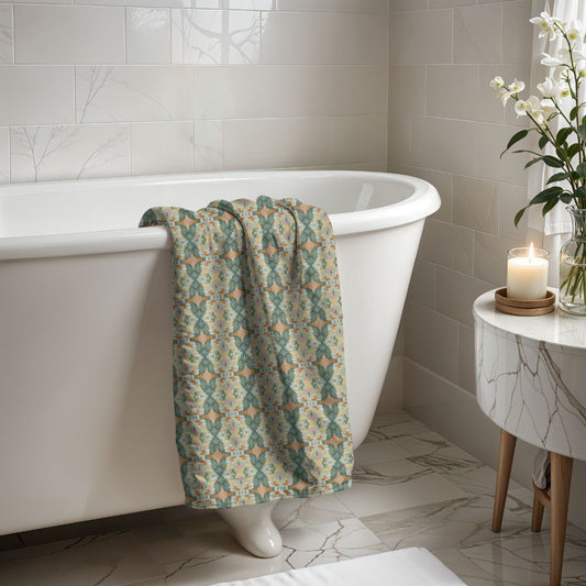Ortensia Retro Floral Damask Stripe in Pink and Pistacchio Green | Bath Towel