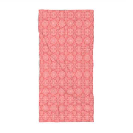 Paloma Flowers and Pineapples in Coral Red and White | Bath Towel