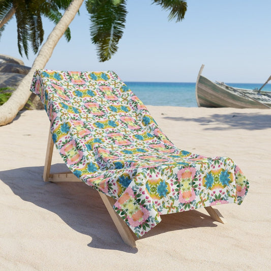 Bold Blooms in Pink, Yellow and Blue | Beach Towel