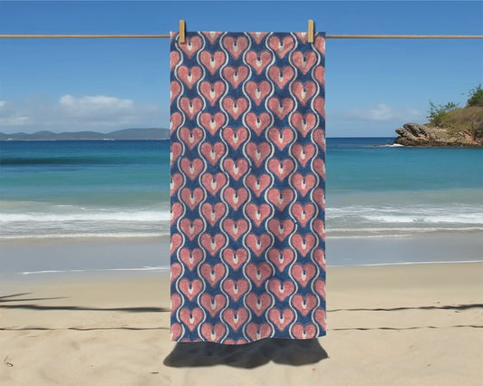 Vintage Painted Hearts in Navy Blue and Pink | Beach Towel
