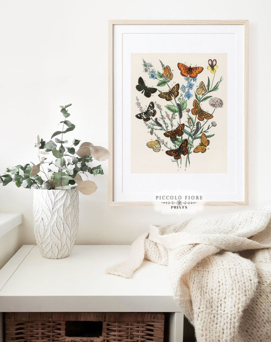 Vintage Butterfly and Caterpillar Art Print | Botanical Wall Art | Flowers and Butterflies Illustration | Instant DIGITAL DOWNLOAD | P28