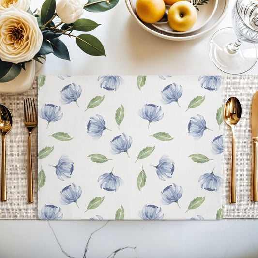 Blue Flowers and Leaves in Dark Blue | Placemat