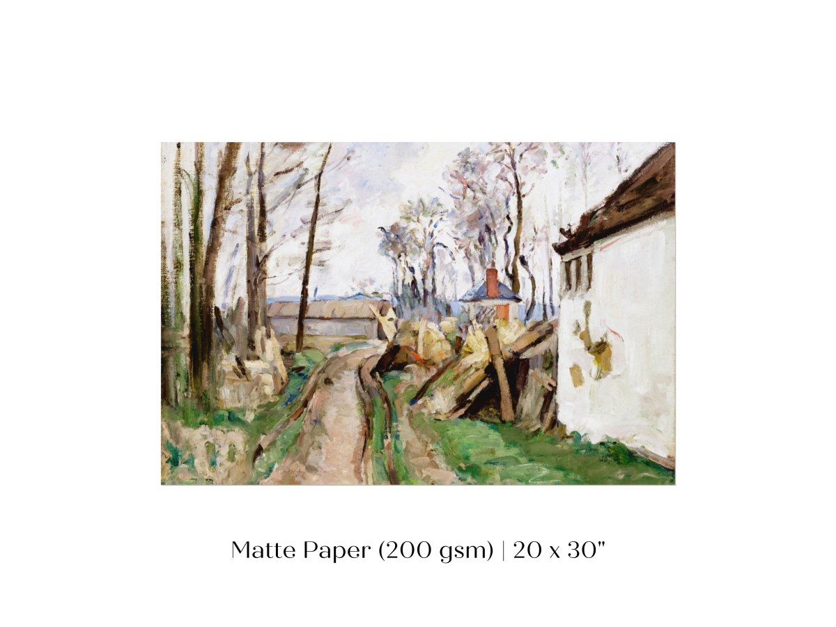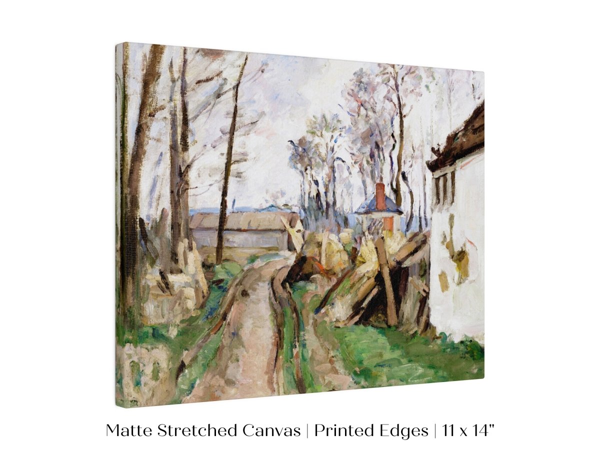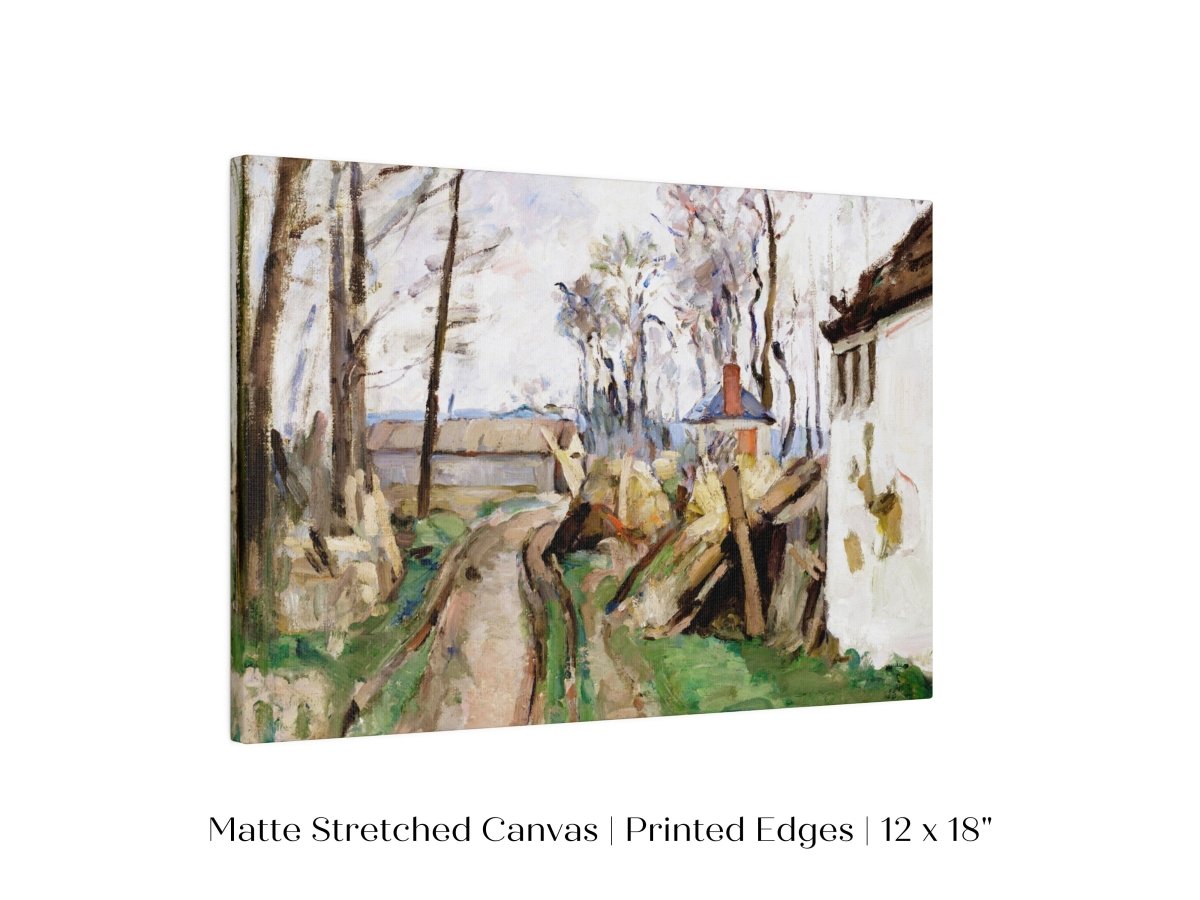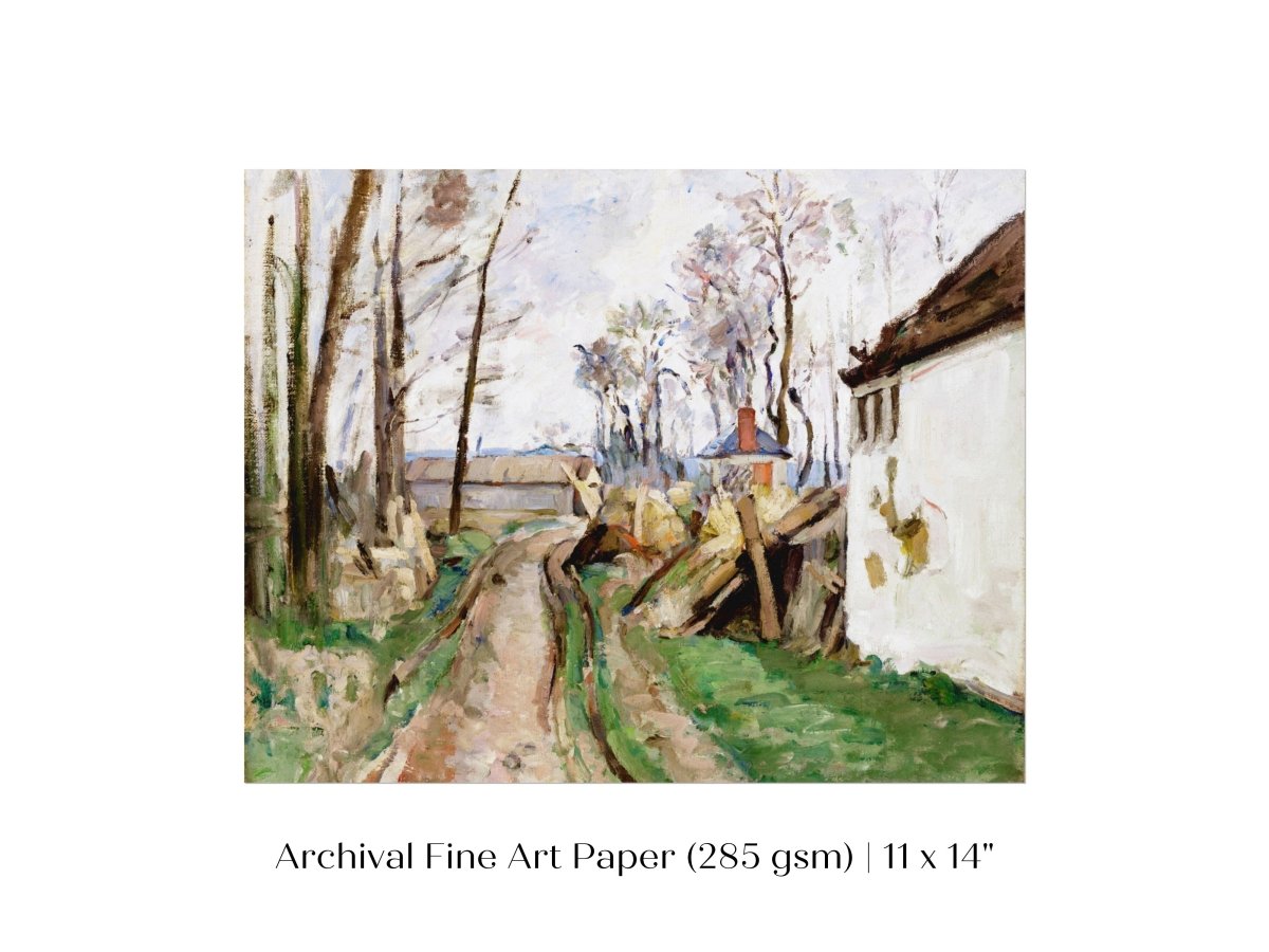 Vintage Village Road near Auvers farmhouse/countryside landscape painting by Paul Cézanne (1872-1873).