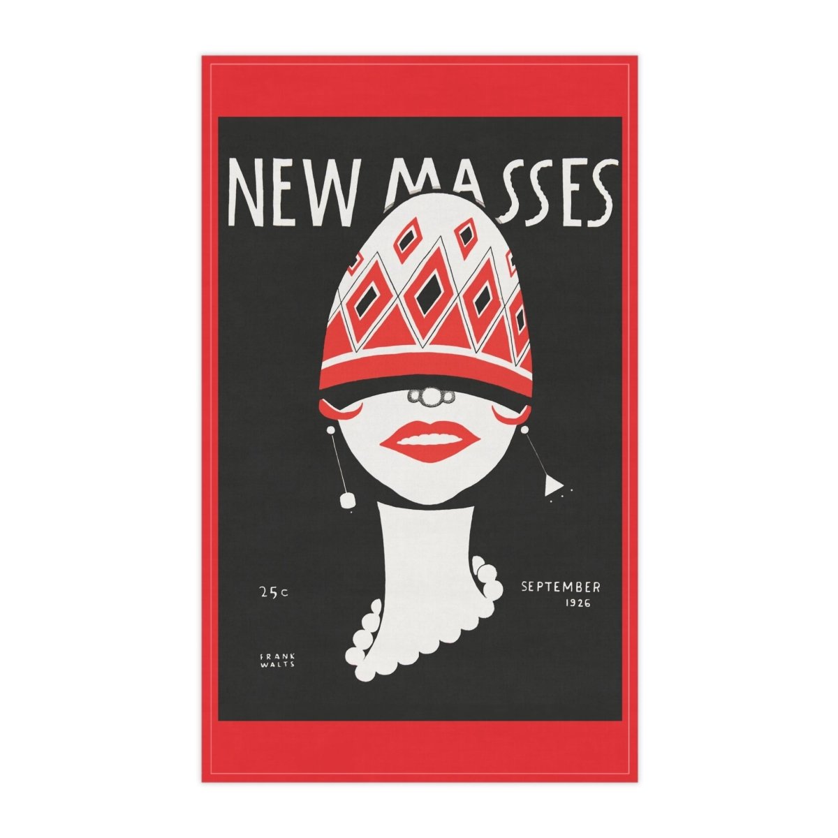Tea towel featuring a retro New Masses magazine cover by Frank Walts from the 1920s, featuring a woman in a hat, from our Vintage Art Poster collection.