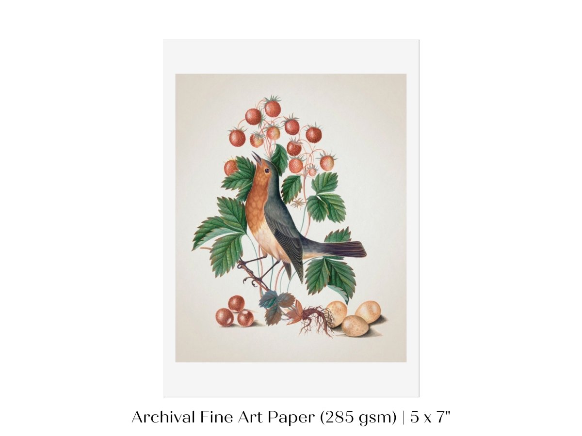 Robin and Strawberries Illustration | P385