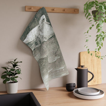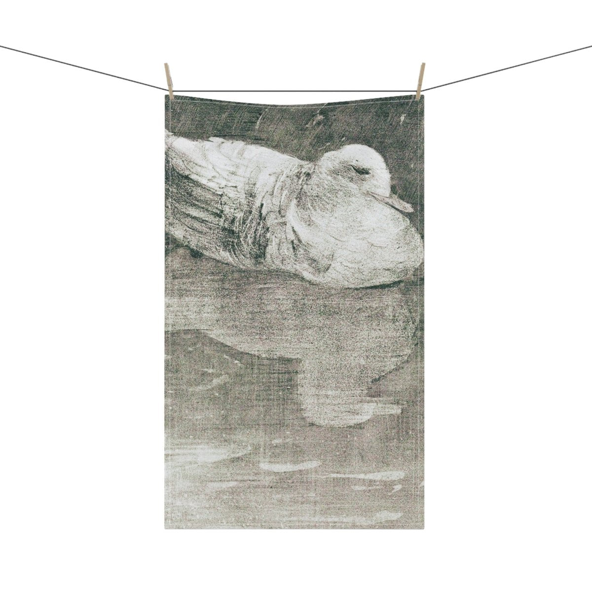 Tea towel featuring an illustration of a white duck reflecting in the water, from our Country Farmhouse collection.